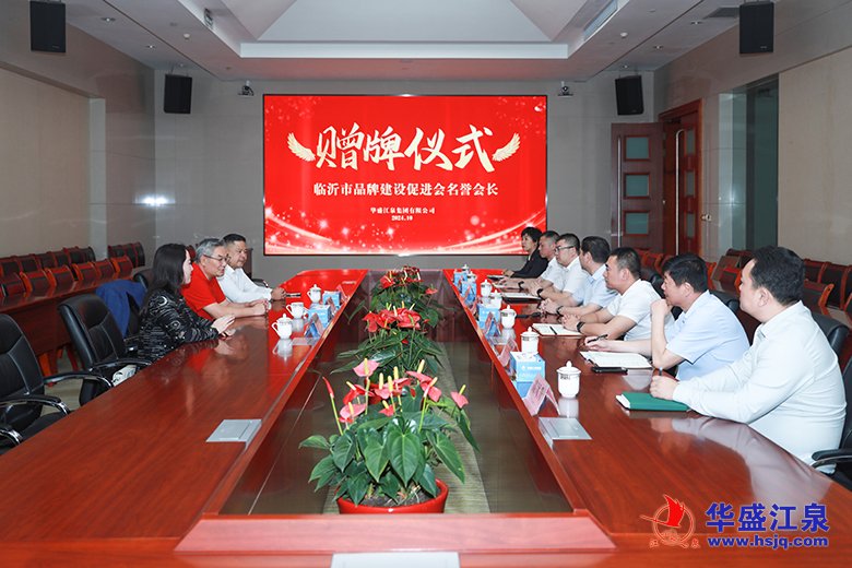 10月16日,臨沂市品牌建設(shè)促進會在集團舉行名譽會長單位贈牌儀式并進行座談交流。臨沂市政府原副市長劉賢軍,臨沂市品牌建設(shè)促進會會長胡守利、秘書長劉亦珈,華盛江泉集團黨委書記、總經(jīng)理高洪路,集團高管張毅、孟濤、付冬明、林洪標,以及華盛江泉城大酒店、臨沂江泉肉制品有限公司負責人出席儀式。