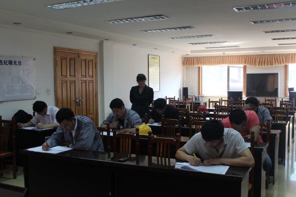 4月28日,華盛江泉集團第三批后備人才(鋼鐵班)筆試在鋼鐵廠舉行。早上八點半,考試在大會議室正式進行,安排座位,試卷統一開啟,然后下發,充分體現了選拔的公平與公正。考試期間,手機全部關閉放在桌子的左上角,鋼鐵廠監考人員全程監督,充分體現了公平公正原則。
