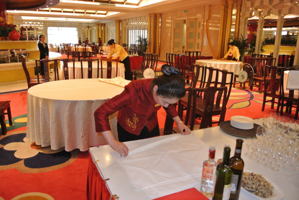 2014718日,由華盛江泉城酒店承辦的華盛江泉集團第四屆“勞動之星”職業技能競賽中餐擺臺項目的實操比賽在酒店泉韻中餐廳正式啟動。參加本次比賽的選手共有38人,經理論考核選拔,成績領先的15名選手進入了實操決賽。