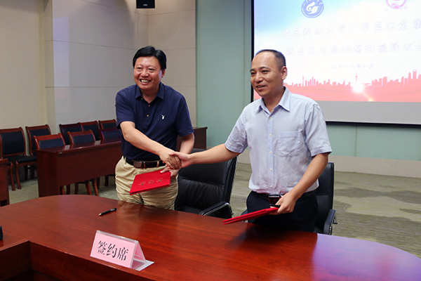 在簽約儀式上,王文圣代表華盛江泉集團分別與山東科技大學機械電子工程學院黨委書記陳濤簽訂了《校企合作協議》,與機械電子工程學院副院長韓寶坤簽訂了《高層次人才引進協議》。隨后,陳濤為教學實習基地授牌。授牌儀式后,雙方與會人員共同合影留念